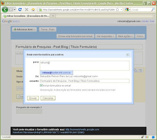 Depois de conversar com um conterrâneo sobre questionarios no Joomla me veio a cabeça a funcionalidade de Formulário da Planilha do Google Doc ( equivalente ao Calc do OpenOffice ou Excel do Microsoft Office). Nesse artigo vou explorar tal funcionalidade bem como as formas para publica-la, ou seja, incorporada no seu site/blog e afins, enviar por e-mail ou simplesmente distribuindo a URL do mesmo.